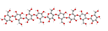 Este modelo muestra 9 moléculas de glucosa unidas por enlaces β-1,4 alternos.