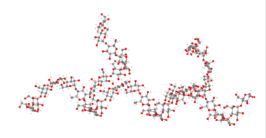 El siguiente modelo muestra 40 unidades de glucosa, formando una estructura helicoidal, con aproximadamente 7 unidades de glucosa por vuelta, como puede ser vista cuando se mira el final del tubo molecular. Esta estructura es estabilizada por puentes de hidrógeno, entre el -OH de C3 y el -OH de C2 en la siguiente unidad de glucosa.