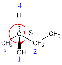 - Si esto es en sentido antihorario, entonces es el estereoisómero S (latín; siniestro = zurdo).