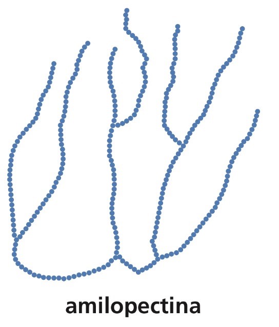 Las moléculas de amilopectina son significativamente más grandes que las moléculas de amilosa; algunas contienen entre 10000 y 20000 unidades de glucosa. La amilopectina es esencialmente insoluble en agua caliente.