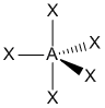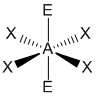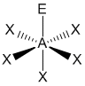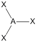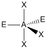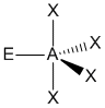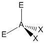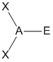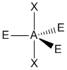 "A" representa el átomo central, "X" representa el dominio (observe que puede haber uno, dos, o tres pares de electrones entre A y X), y "E" representa un dominio electrónico de no-enlace (un par de electrones).